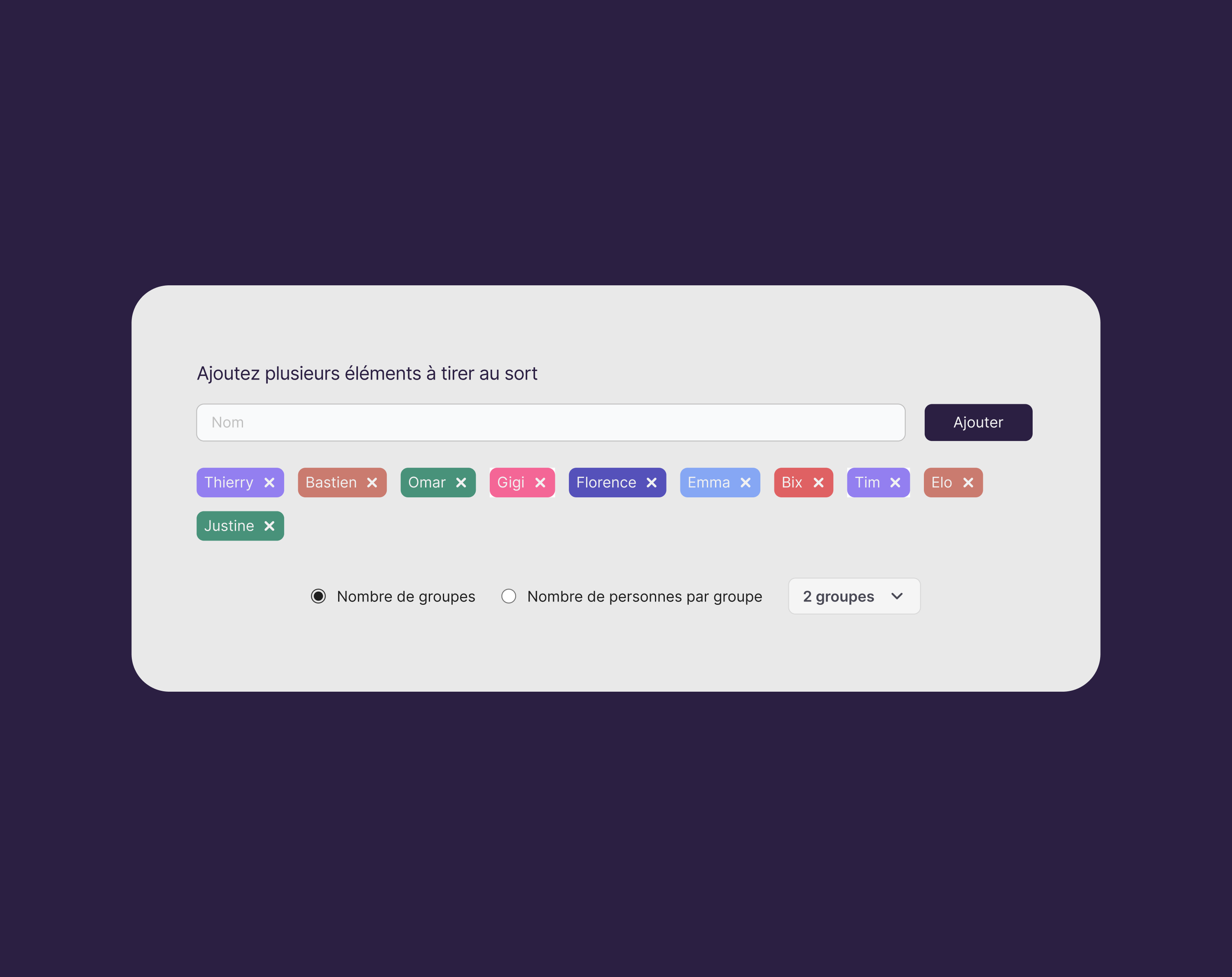 A real UX challenge: creating a solution capable of sorting elements into equitable groups, with options for users to easily move items between groups, and a clear visual representation of the groups and their contents. The goal was to design a system that would allow users to easily organize and manage their items, while also providing a clear and intuitive interface.